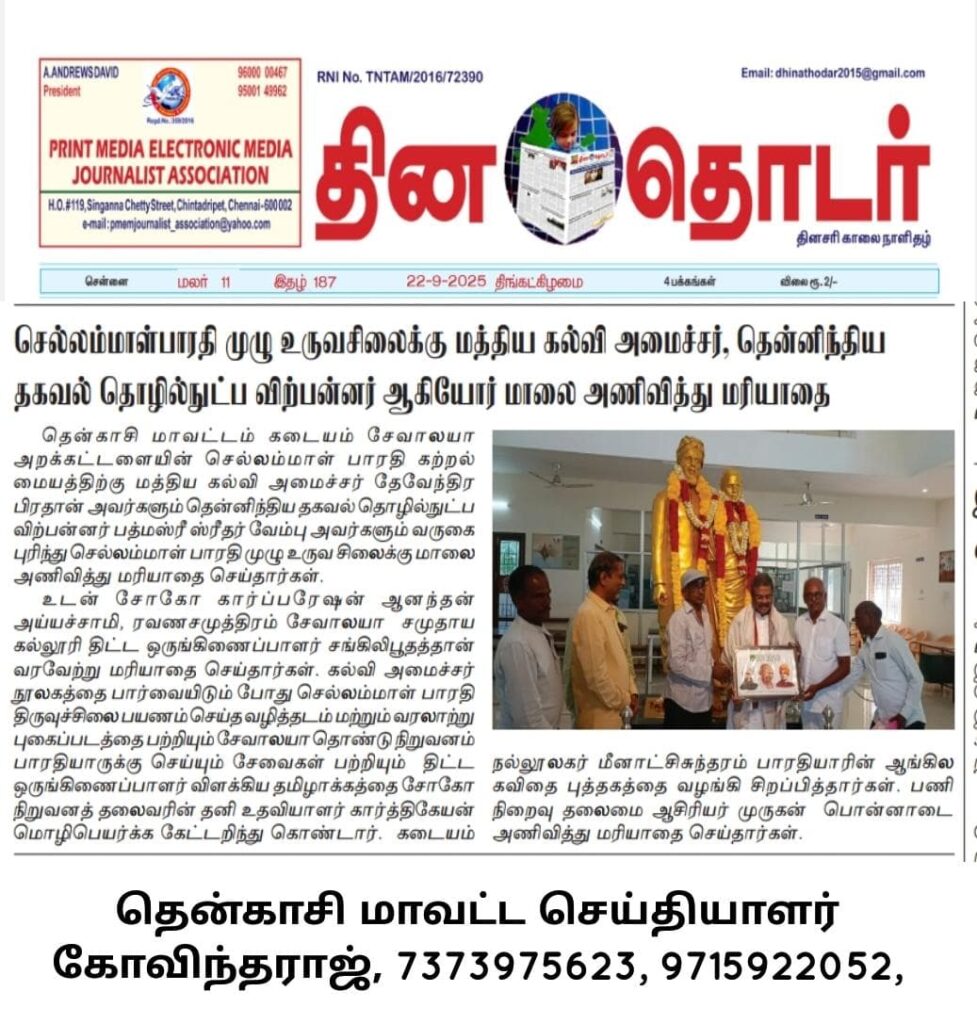 Union Education Minister Dharmendra Pradhan Visits Chellamma Bharathi Learning Centre on Dinamani