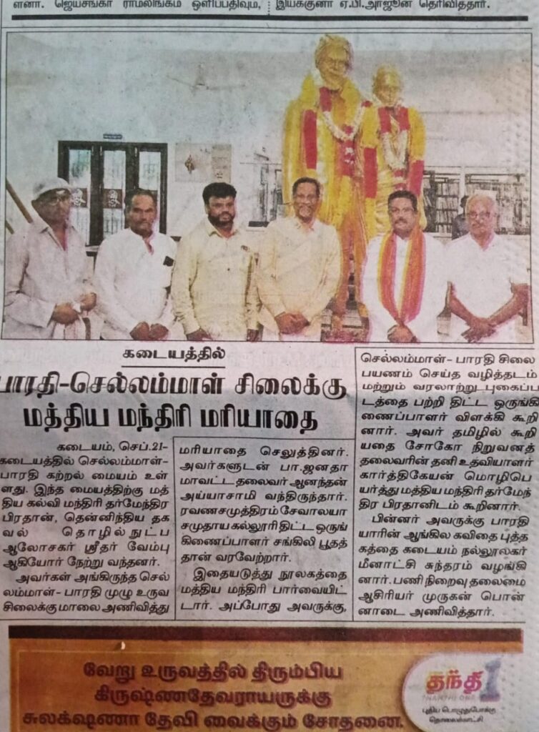 Union Education Minister Dharmendra Pradhan Visits Chellamma Bharathi Learning Centre on Dina Thanthi