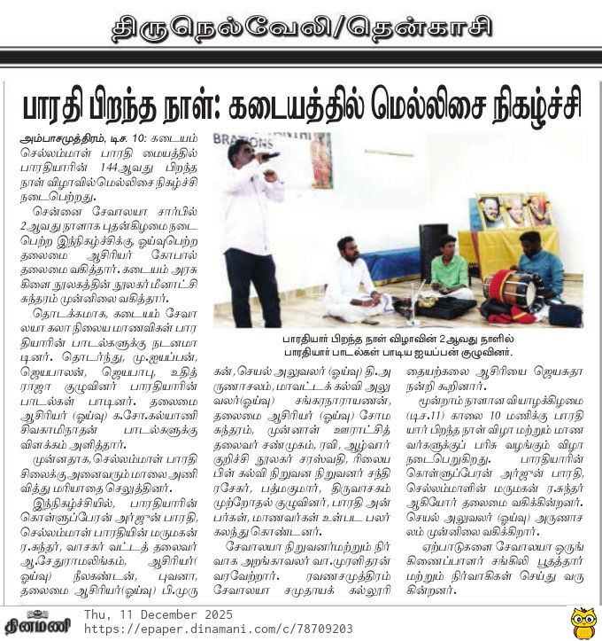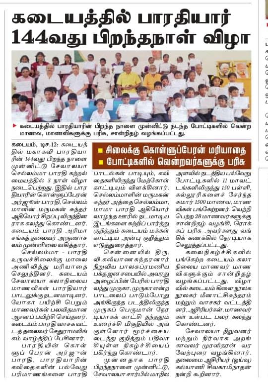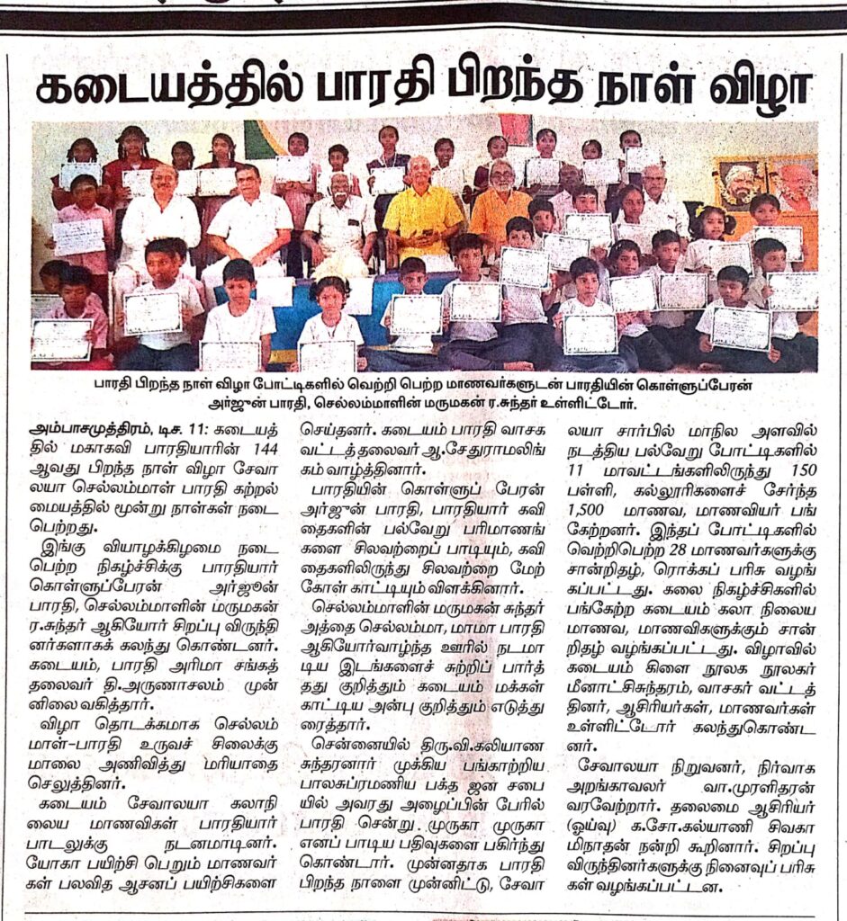Bharathiyar Jayanthi, Kadayam at Dhinamani