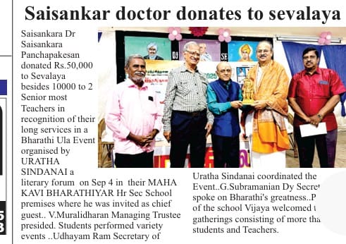 Sevalaya’s 37th Annual Day in Tamil Murasu