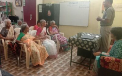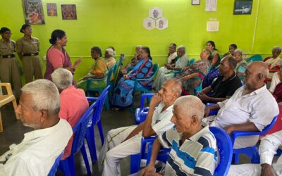 NCC students interacts with destitute elders at Sri Ramakrishna Paramahamsa old age home.