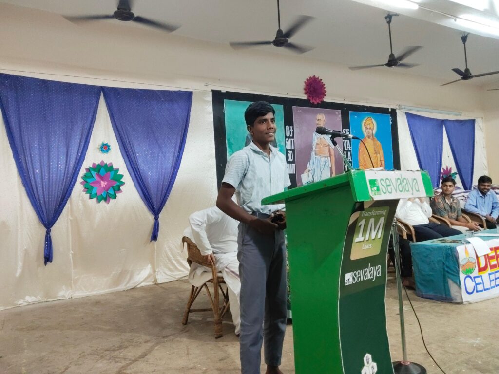 An underprivileged student, he has been staying at Sevalaya’s Children’s Home for the past 8 years. Sevalaya identified his sports talent, and has coached him in basketball since Std IV. In the recently conducted Tamil Nadu CM Trophy, he was selected to represent Tiruvallur district in basketball. The competition took place from 1 to 7 October 2025 in Coimbatore. He won ₹50,000 in the competition. When his victory was announced, he promptly expressed his desire to donate the entire prize money to Sevalaya for its charitable activities. His gesture of donating such a significant amount despite his poor background was appreciated by everyone.